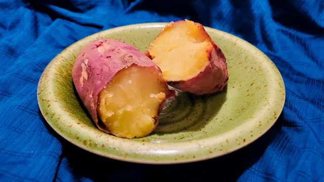 では、生のサツマイモ100gあたりに含まれるアミノ酸(五訂日本食品標準成分表に掲載)の量をみてみましょう。イソロイシン:50mg、チロシン:25mg、アラニン:72mg、ロイシン:74mg、スレオニン:69mg、アスパラギン酸:240mg、リジン:57mg、トリプトファン:15mg、グルタミン酸:130mg、メチオニン:23mg、バリン:71mg、グリシン:51mg、シスチン:21mg、ヒスチジン:26mg、プロリン:45mg、フェニルアラニン:67mg、アルギニン:41mg、セリン:67mgとなっています。